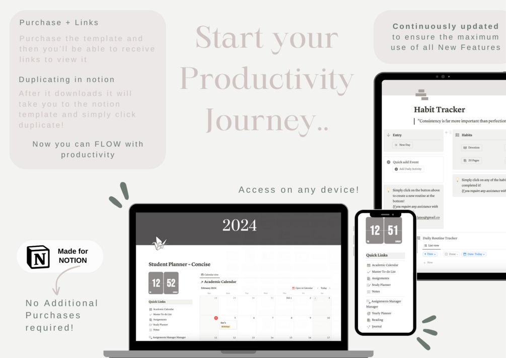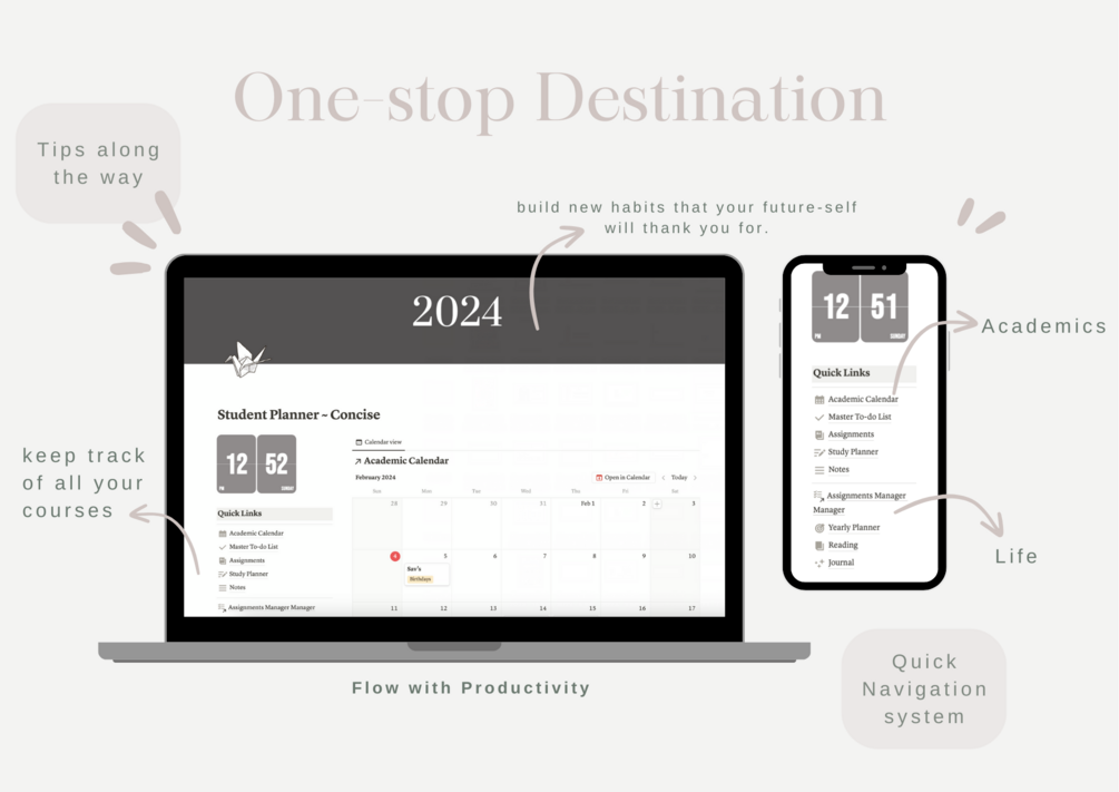 Student Planner | Notion Template, Aesthetic, Dashboard, College Planner, Productivity, goal setting (copy)